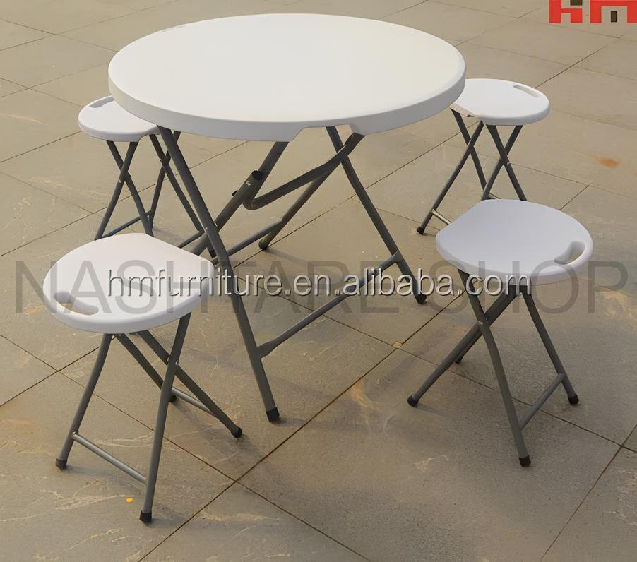 A durable and portable round plastic folding stool, perfect for camping, picnics, and outdoor gatherings. Designed with a modern aesthetic and built to last, this stool offers convenience, comfort, and space-saving functionality.