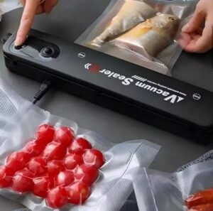 A compact and efficient vacuum sealer machine designed to preserve food freshness by removing air from bags. Includes 10 vacuum bags and features a 30-second warm-up for quick operation. After sealing, the machine rests for 1–2 minutes to prevent overheating, making it safe and convenient for daily use.