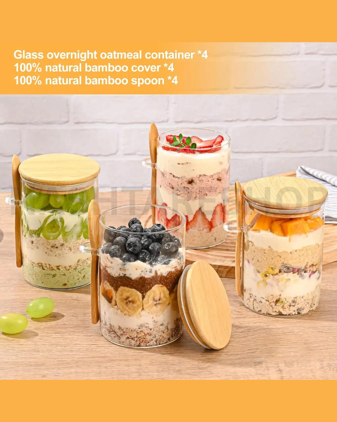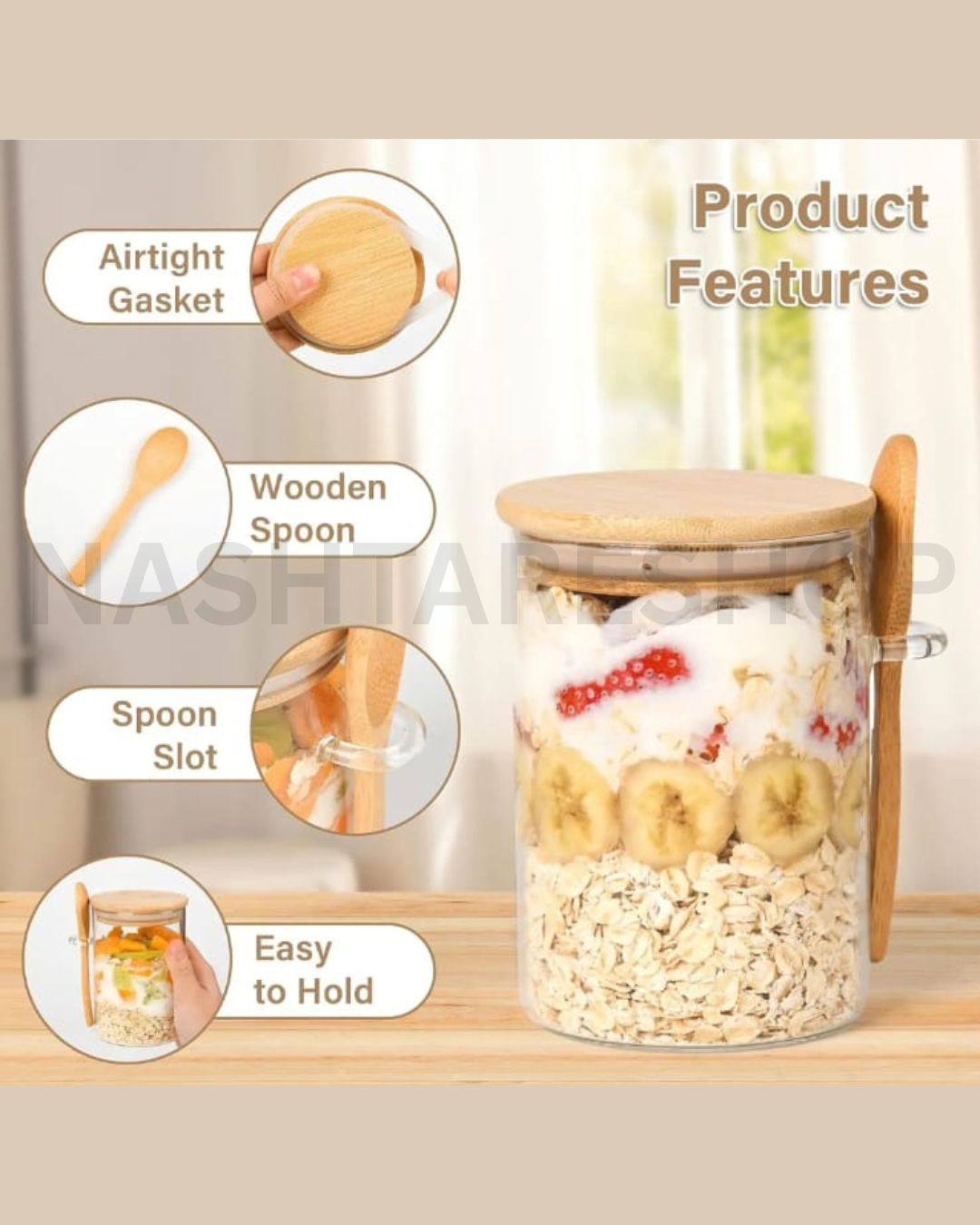 - Material: Borosilicate glass + wooden lid + wooden spoon