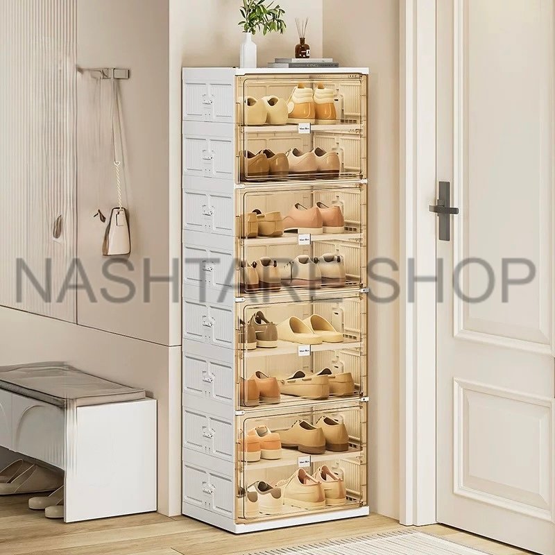 Upgrade your home organization with this Folding Transparent Shoe Cabinet. Designed in a modern minimalist style, this shoe rack combines practicality and aesthetic appeal, making it a perfect addition to your living room, hallway, or closet space.