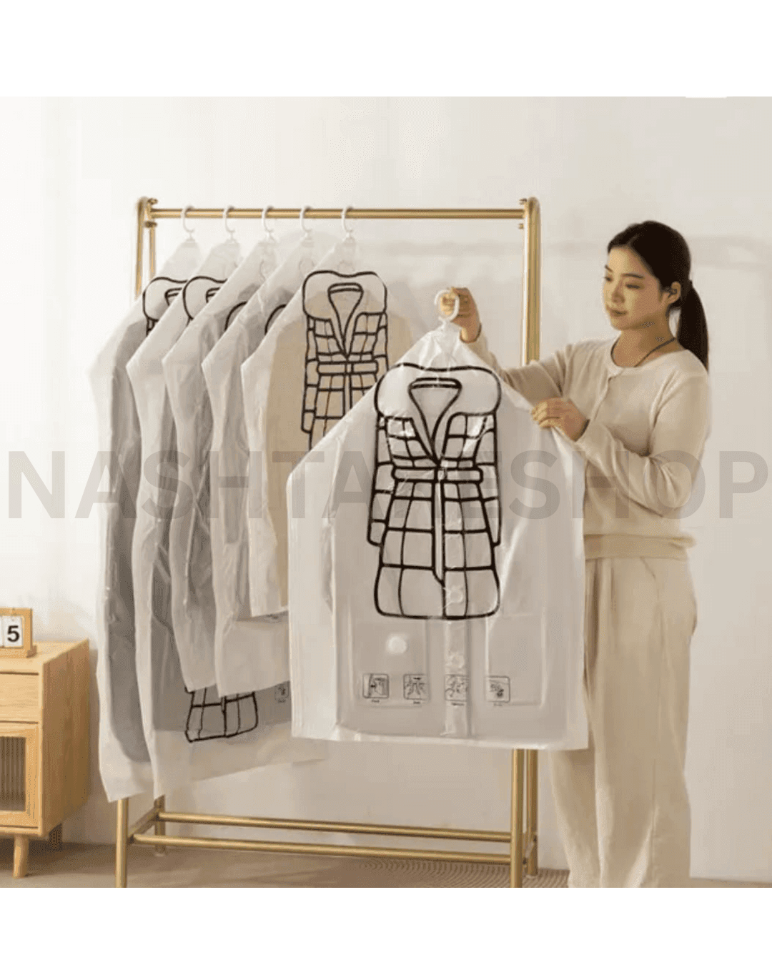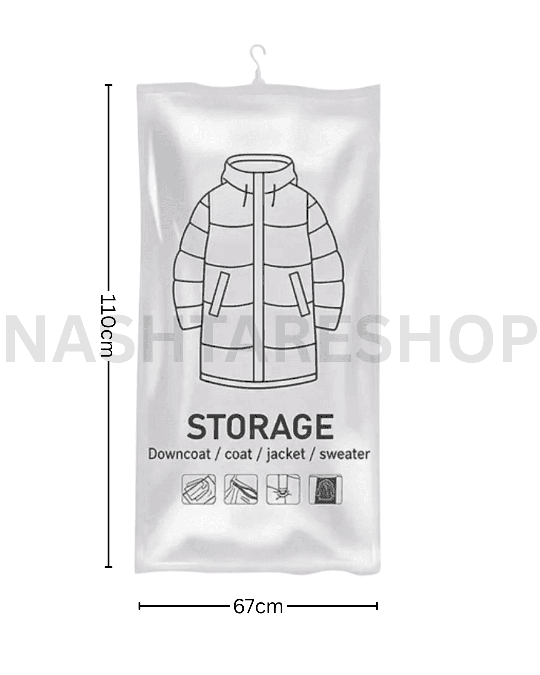 The Cangle Hanging Vacuum Compression Bag is designed to efficiently store bulky clothing such as coats, jackets, and seasonal wear. With its hanging design and vacuum compression system, it helps maximize closet space while protecting garments from dust, moisture, and insects. Perfect for home organization and wardrobe storage.