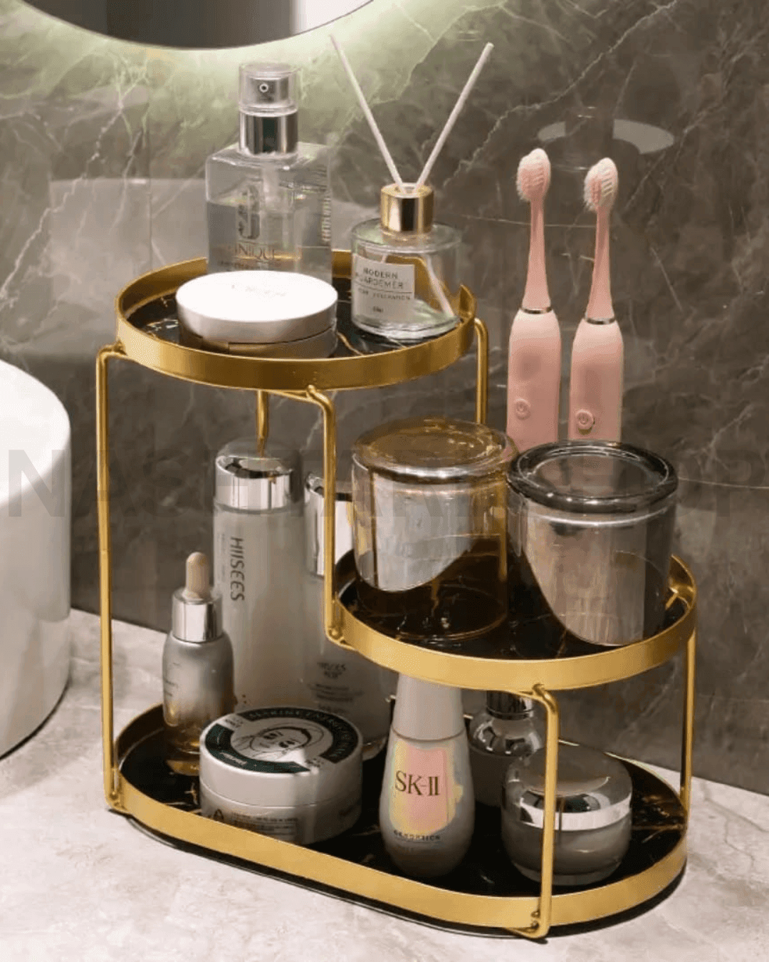 The Luxury Triple Shelf Organizer is an elegant storage and display piece designed to elevate any space. Featuring a premium black marble-style base combined with gold iron detailing and glass shelves, it adds a modern luxury touch to your home. Perfect for organizing cosmetics, perfumes, decor items, or small accessories while keeping everything stylishly displayed.