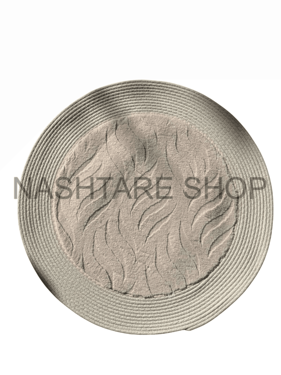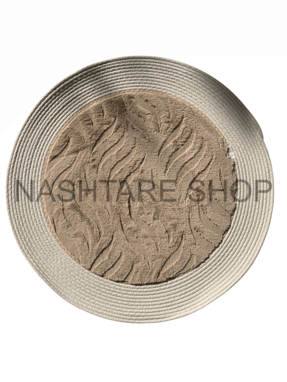 A soft, round carpet combining straw and fur, designed for comfort and style. The patterned design adds an elegant touch to any room.