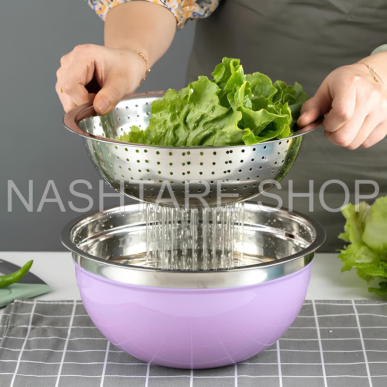 These colorful stainless steel mixing bowls come with tight-fitting plastic lids, making them ideal for food preparation, mixing, serving, and storage. Each bowl is made of high-quality stainless steel that resists rust and maintains its shine. The vibrant colors add a cheerful touch to your kitchen while keeping your ingredients fresh and covered.