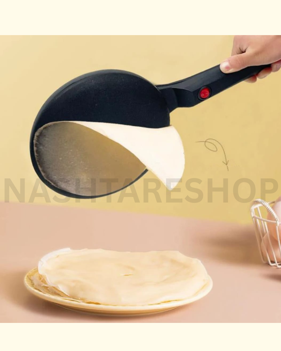 The Sinbo Electric Crepe Maker is designed to help you prepare perfectly thin, even pancakes and French crepes with ease. Lightweight and easy to use, it features a non-stick ceramic cooking plate that prevents sticking and allows for quick, mess-free cleaning. Simply dip the heated plate into the batter bowl, lift it, and within seconds your crepe is ready. The ceramic coating is safe for health and helps preserve vitamins and minerals for healthier cooking.