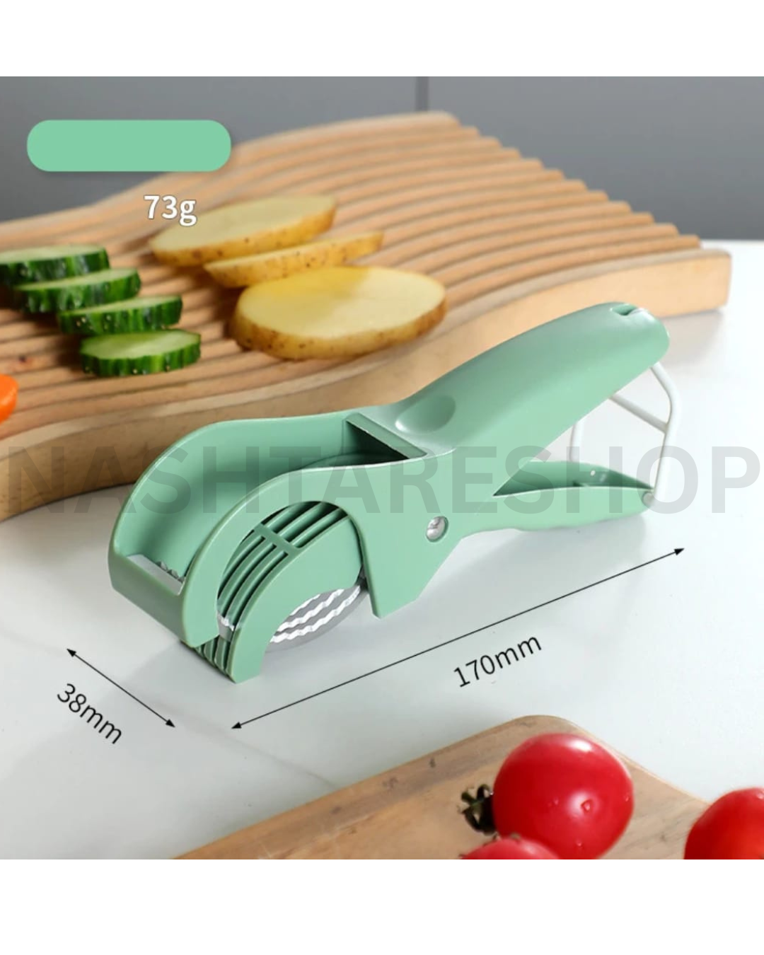 A versatile Cutter & Peeler designed for effortless and precise food preparation. Equipped with extra-sharp stainless steel 5-blades, this tool makes slicing and peeling faster, cleaner, and smoother. Its lightweight plastic body ensures comfortable handling, making it ideal for daily kitchen use.