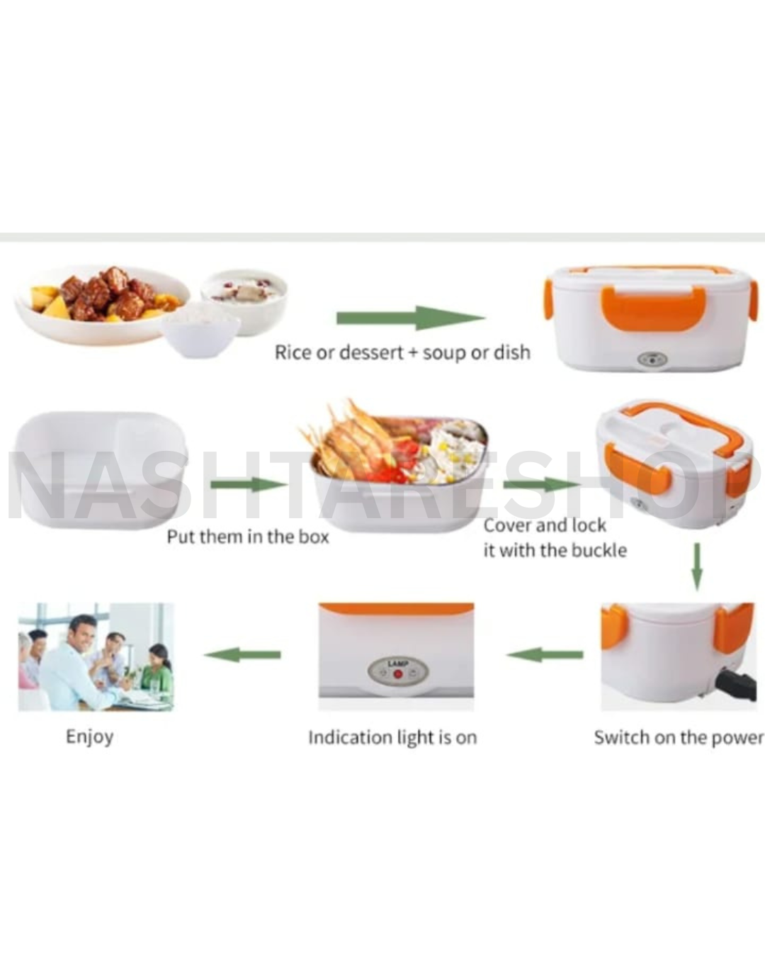 The Electric Lunch Box is designed for convenient, on-the-go heating and meal preparation. Featuring two separate stainless-steel food containers with a total capacity of 1.05L, it allows you to store rice and dishes separately for fresh, evenly warmed meals. With multi-voltage compatibility (12V/24V/110V/220V), it is perfect for home, office, car, and travel use. Made from high-quality, food-grade plastic, it ensures safe, durable, and leak-free performance.