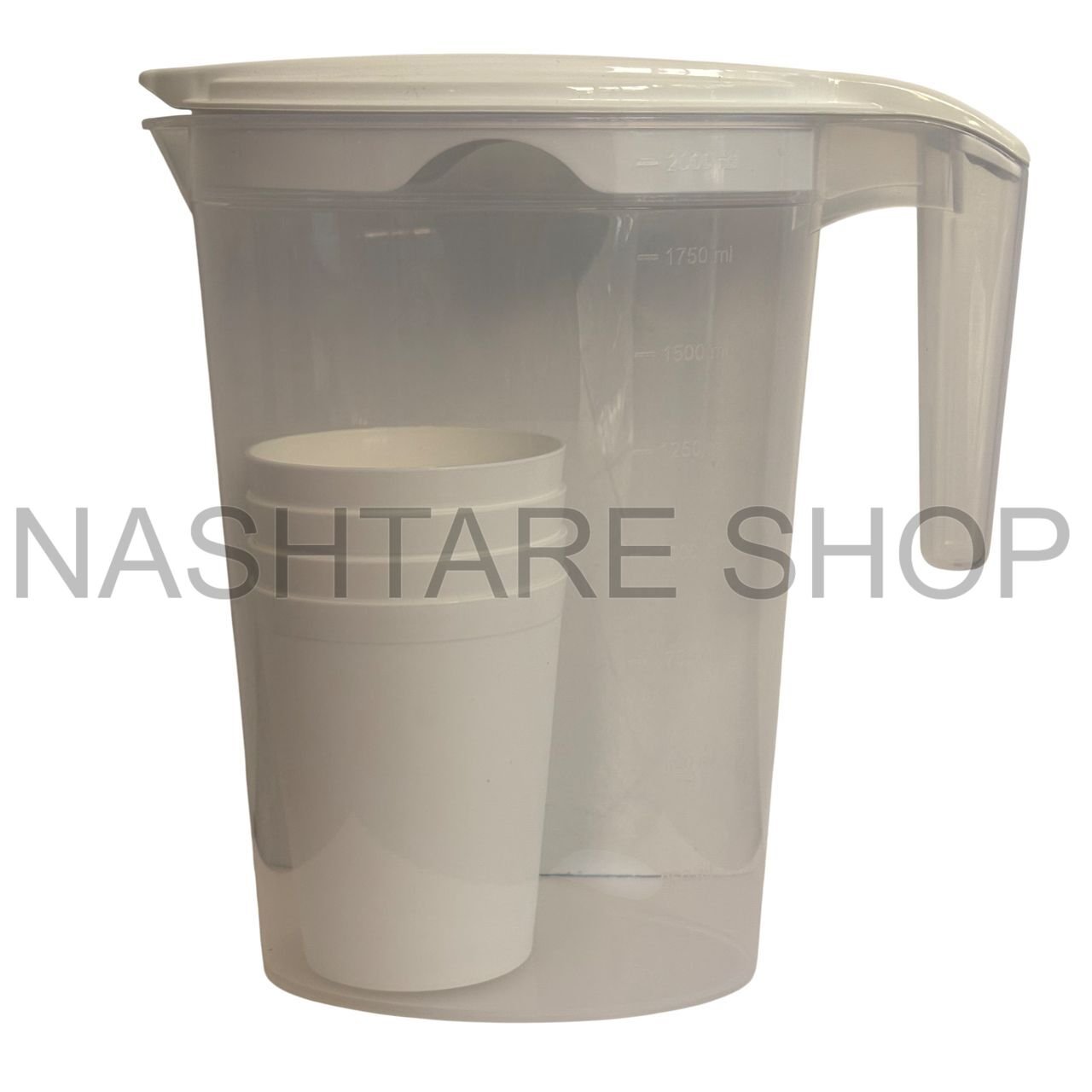 The Plastic Water Jug | إبريق ماء is designed for everyday convenience, perfect for serving water, juice, or other beverages. With a 2-liter (2000 ml) capacity and 4 matching cups, it’s ideal for home, office, or outdoor use. Made from durable, BPA-free plastic and available in elegant Grey and White colors to match any kitchen or dining setup.